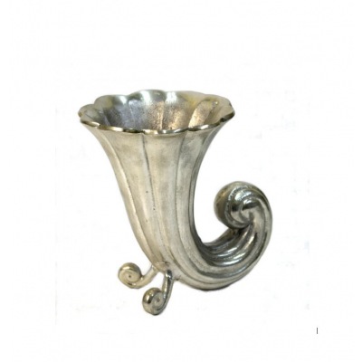Dekorative Vase für Arrangements von Trocken- oder Kunstblumen. Allerdings kann man auch ein Gläschen mit Wasser in das Horn stellen, dann kommen auch Frischblumen prächtig zur Geltung.