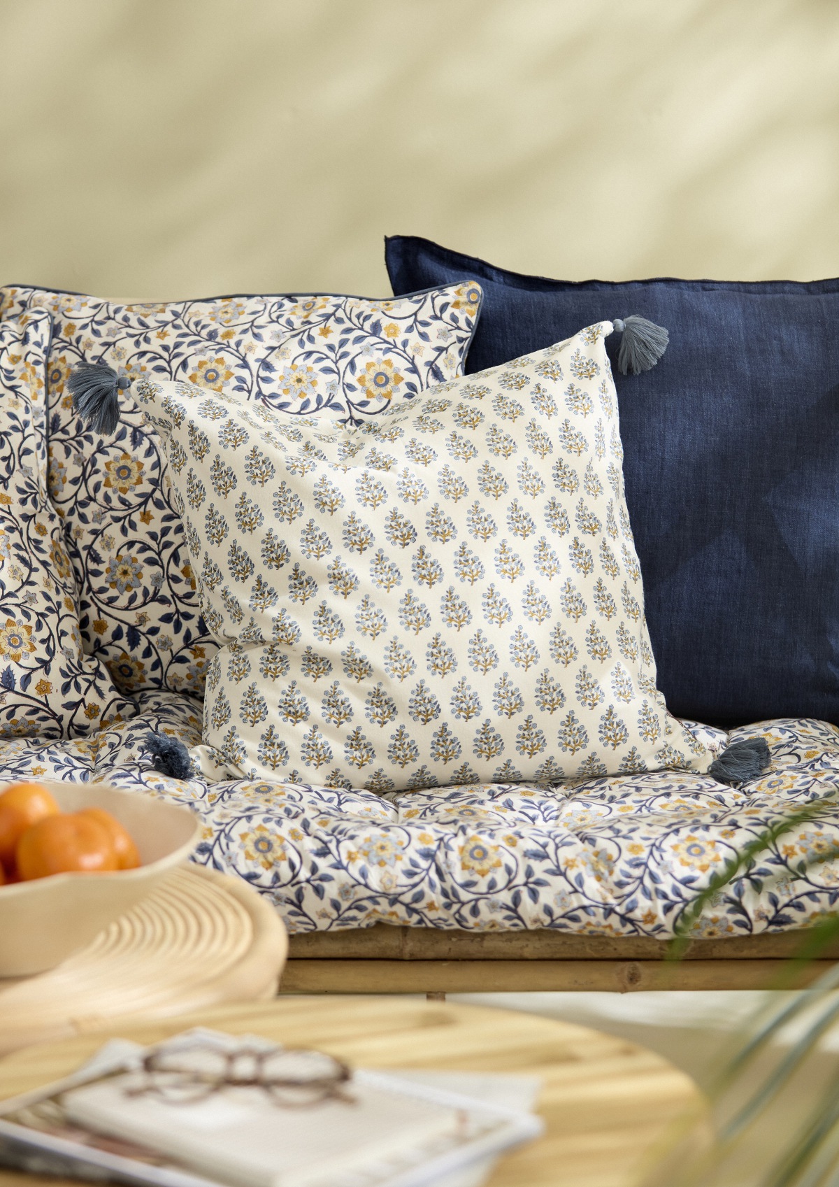 Der Blockdruckprozess ist langwierig und komplex, manche Muster erfordern bis zu 100 Arbeitsschritte und handwerkliche Perfektion. Jedes Polster ist ein Unikat mit ganz besonderen Charme. Kleine „Unregelmäßigkeiten“ sind kein Makel.