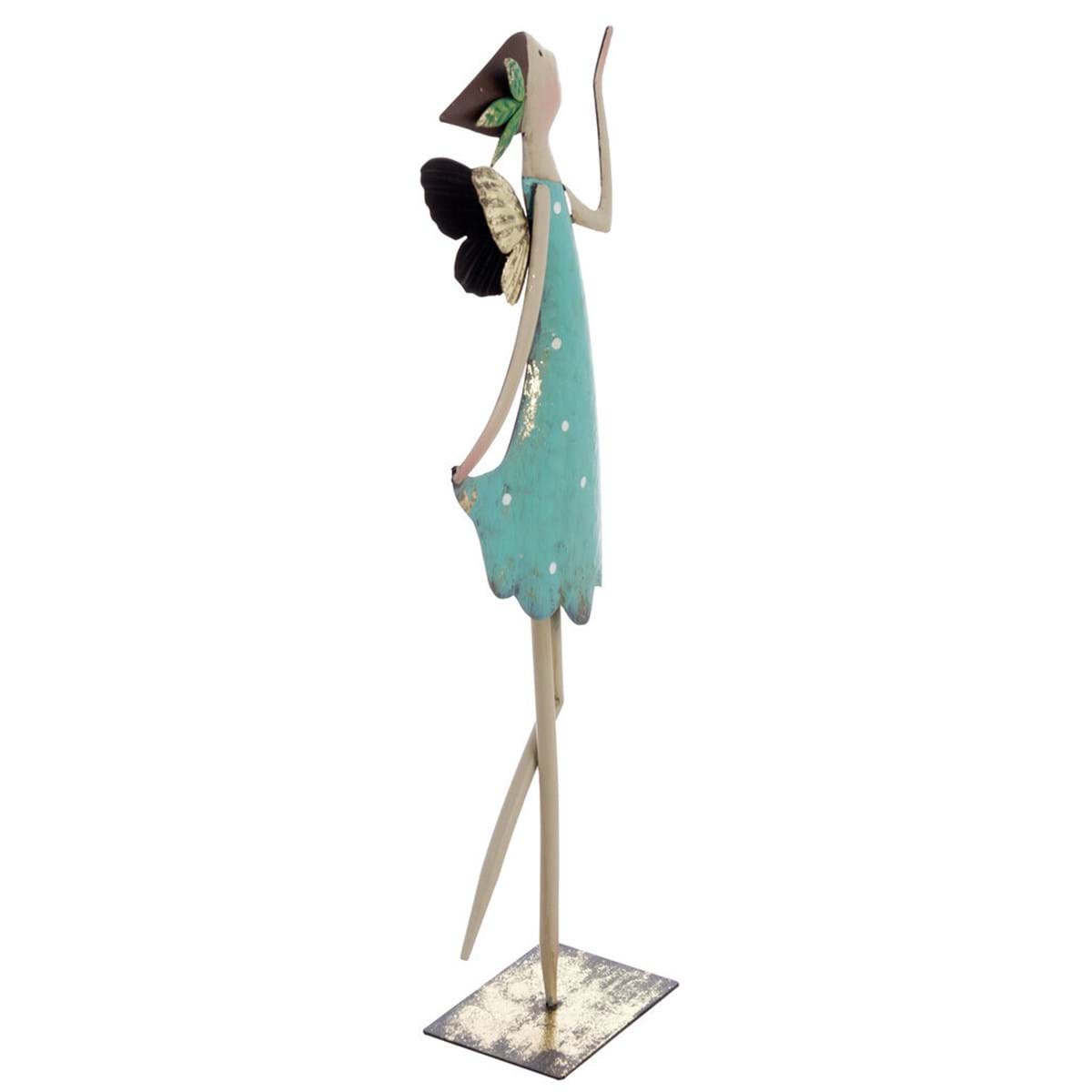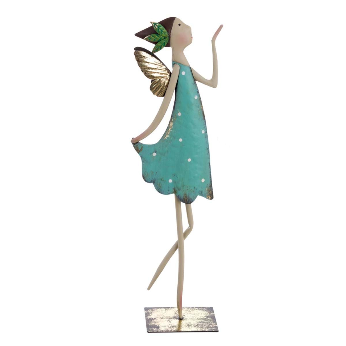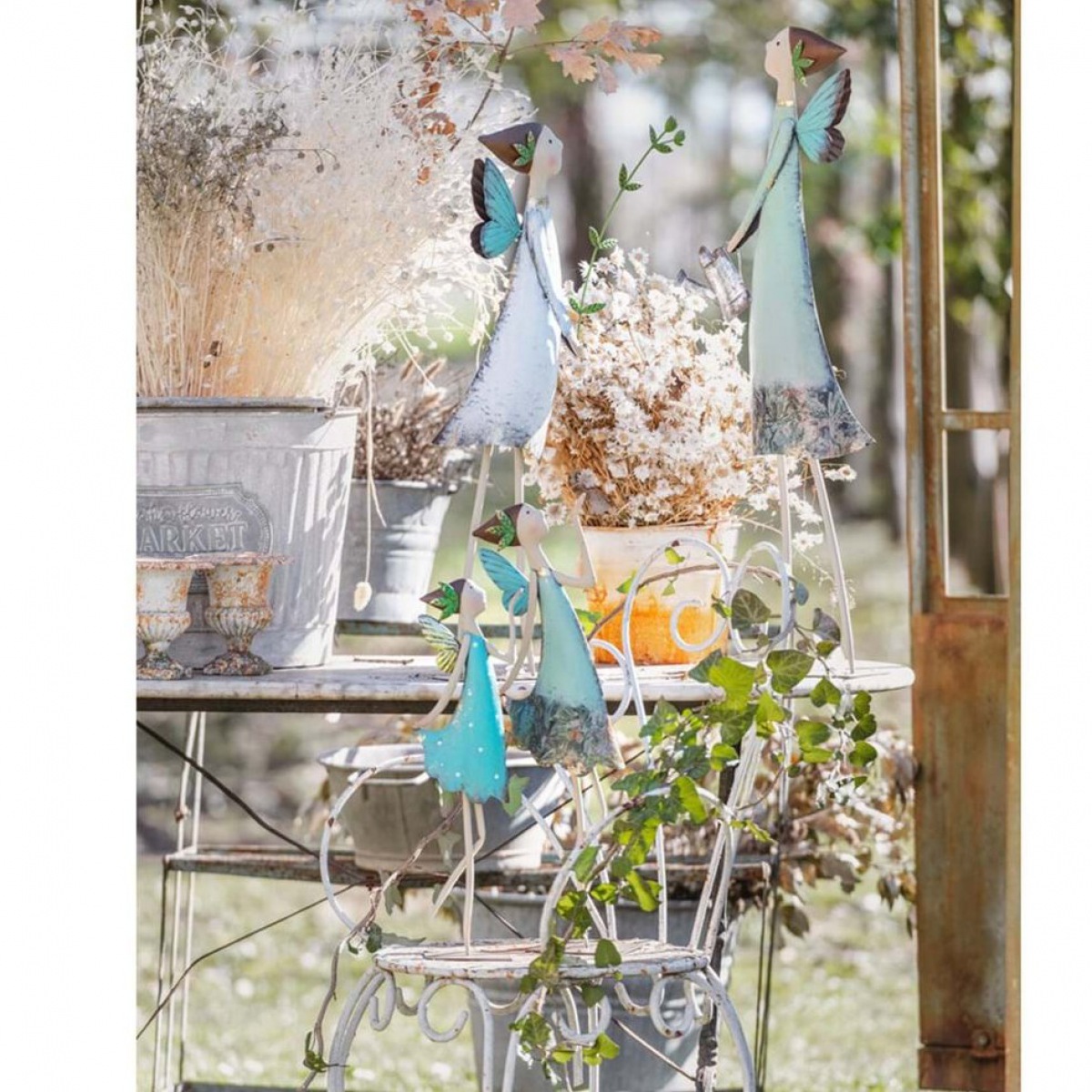 Handbemalte, plastische Figur mit zartem Gesicht und Kleidchen in Pastell, die feinen Gold- oder Silberakzente funkeln märchenhaft im Sonnenschein.