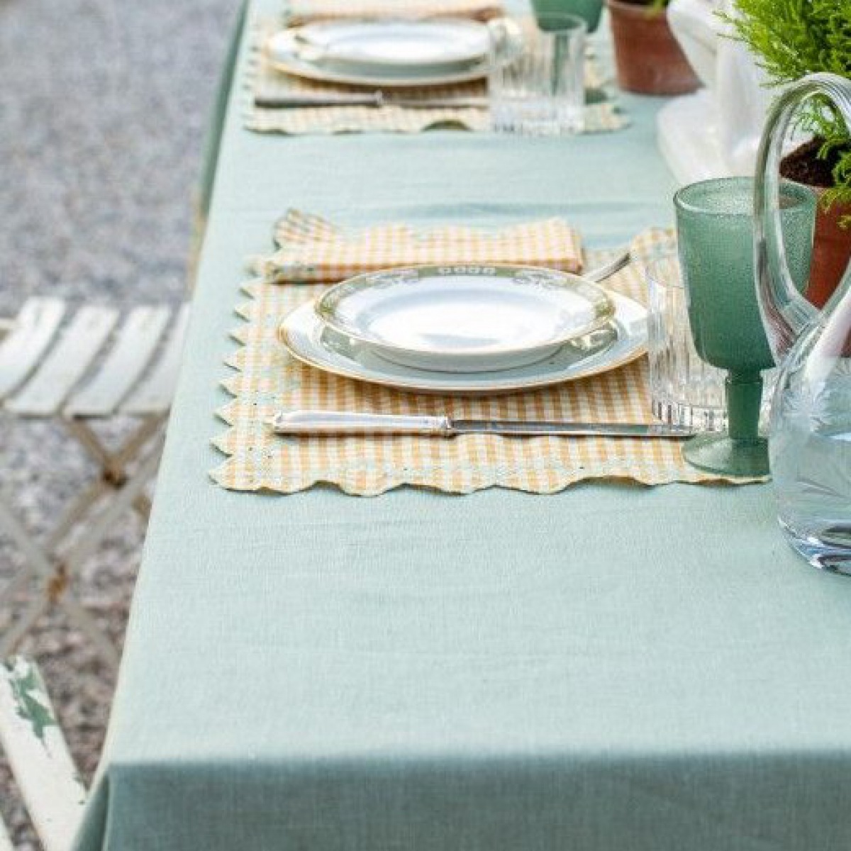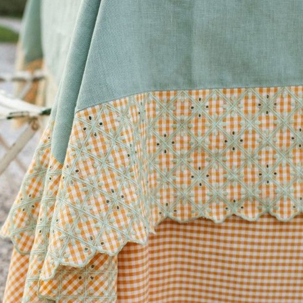 Baumwolltischdecke mit hoher, handbestickter Randbordüre – hergestellt in sorgfältiger Handwerkskunst in der italienischen Manufaktur Borgo.