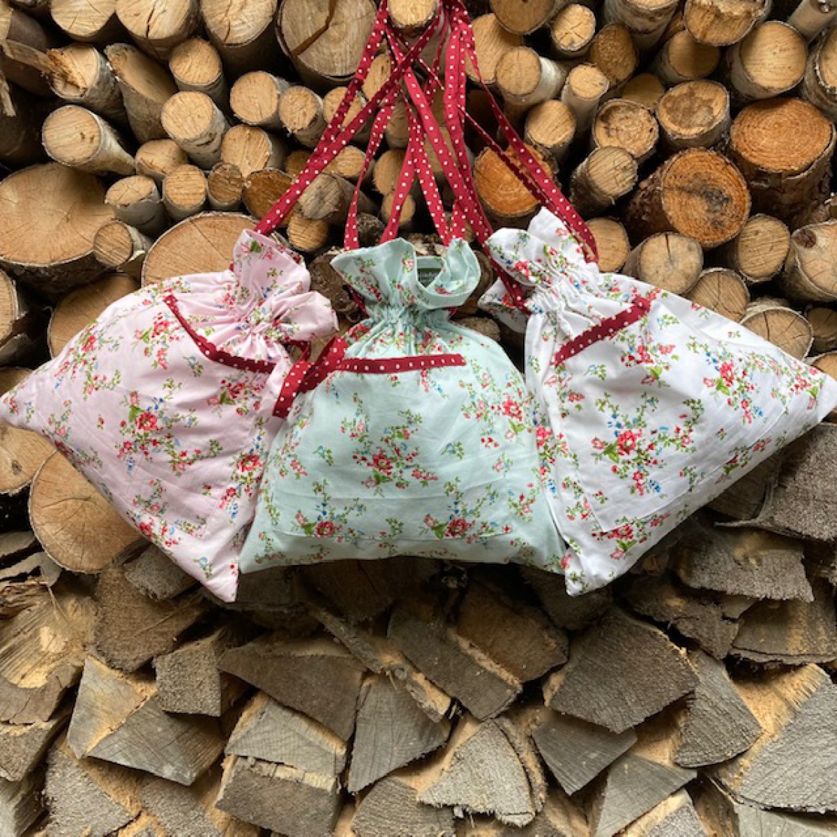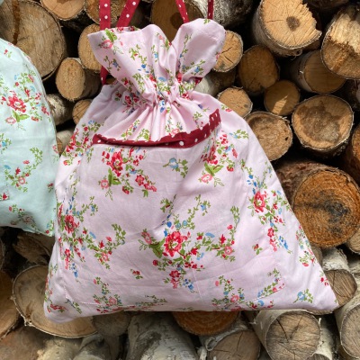 100% Baumwolle Beutel mit kleiner Tasche und hübschen Zugaband, sehr schön verarbeitet..