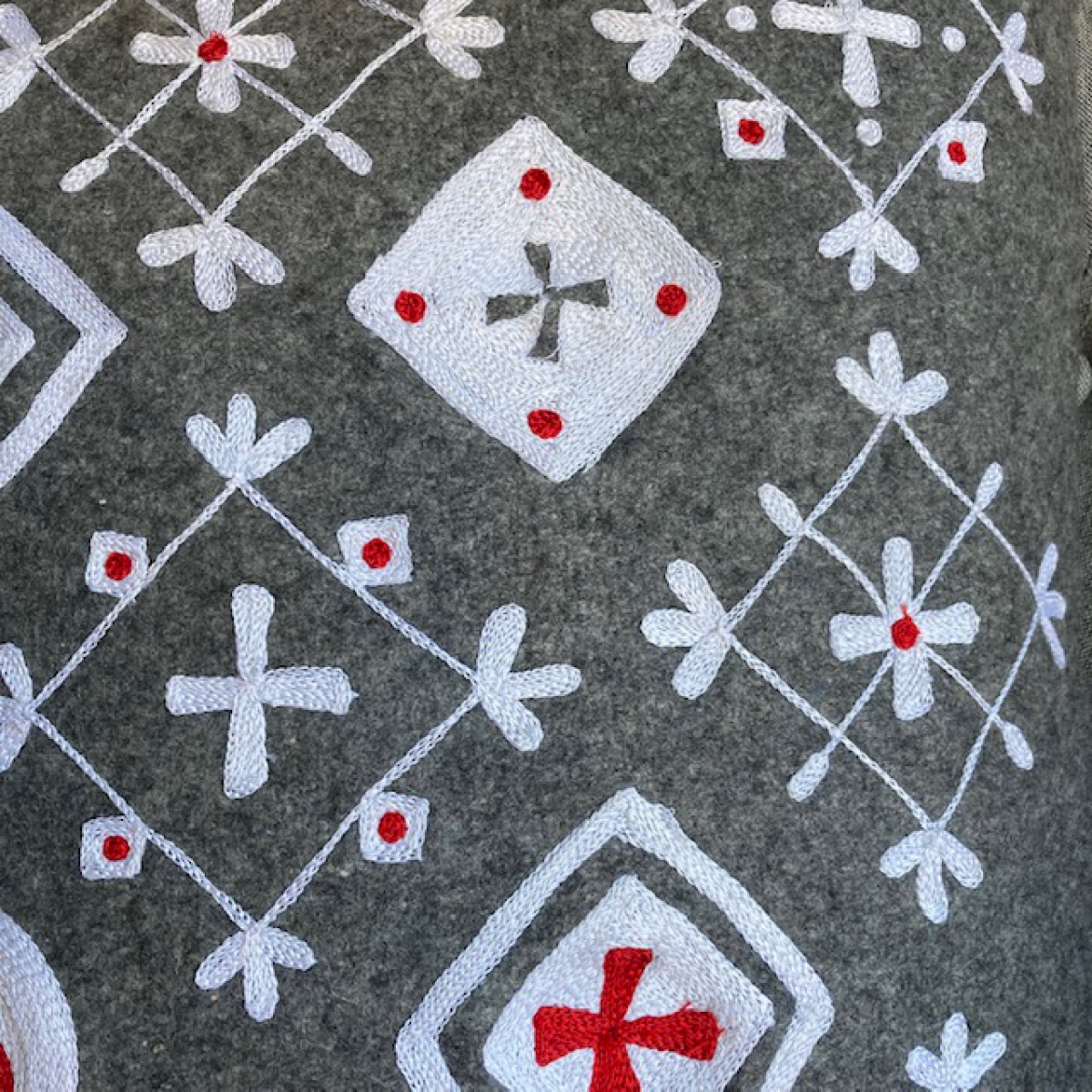 Winterschönes Kissen aus Schurwolle mit Stickereien - dekorativer, moderner Landhausstil aus Schweden.