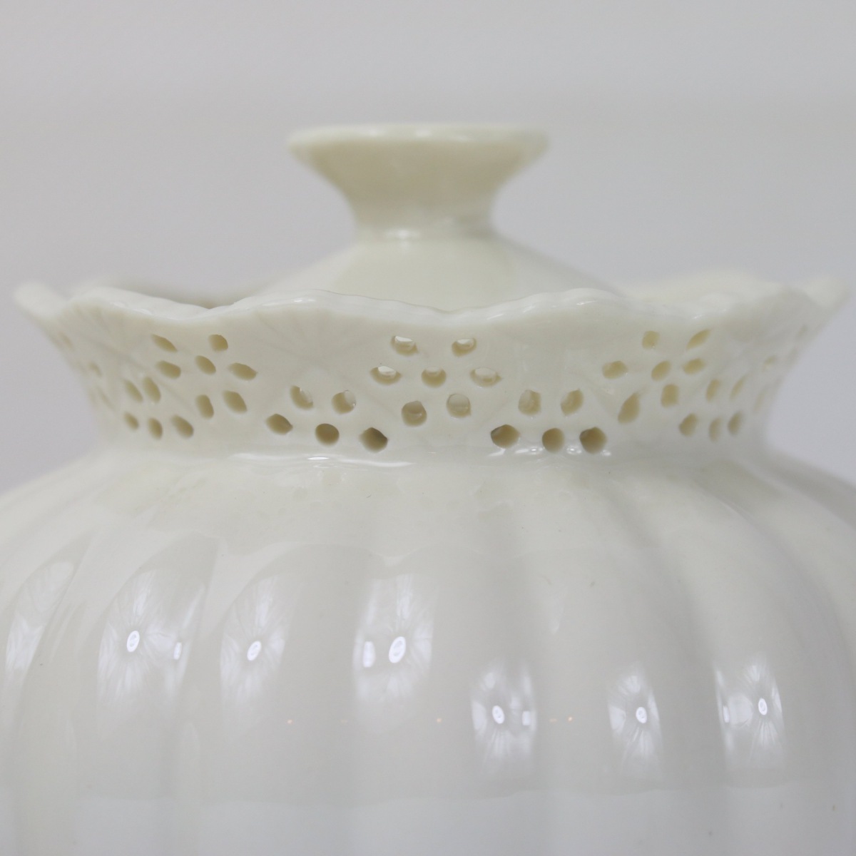 Creamware Geschirr hat eine lange Tradition in England. Charakteristisch sind die gerippten bauchigen Formen, die dezent verzierten Henkel und der durchbrochene Rand. Die Farbe ist wärmer als reinweiß und harmoniert mit fast jedem anderen Geschirr.