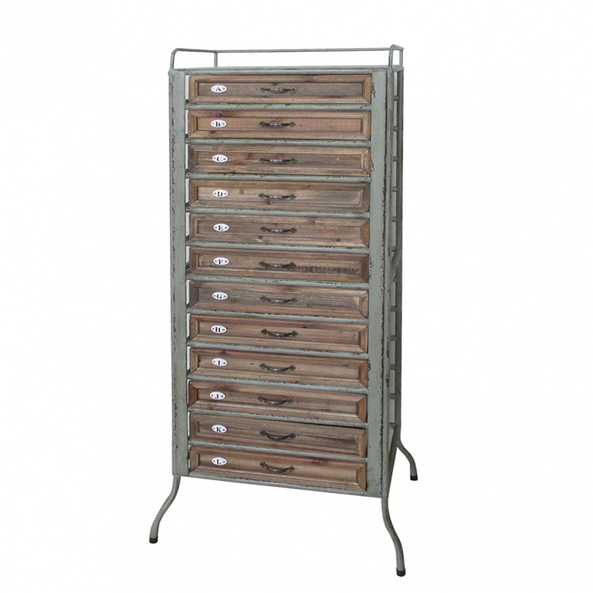 12 Schubläden mit Keramik-Schildern für Übersicht und Ordnung z.B. für Küche, Diele, Werkstatt oder Büro.