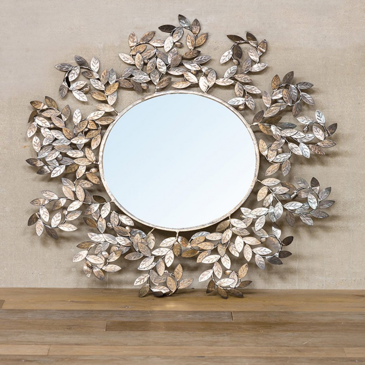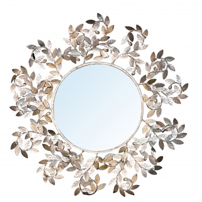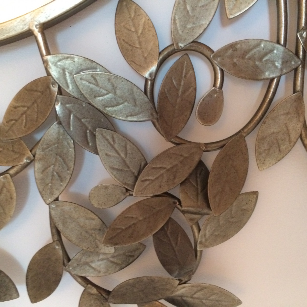 Spiegel und opulenter Wandschmuck – kunstvoll stilisierte Blätter und Äste aus Vollmetall für einen dekorativen Sujet Akzent im Raum