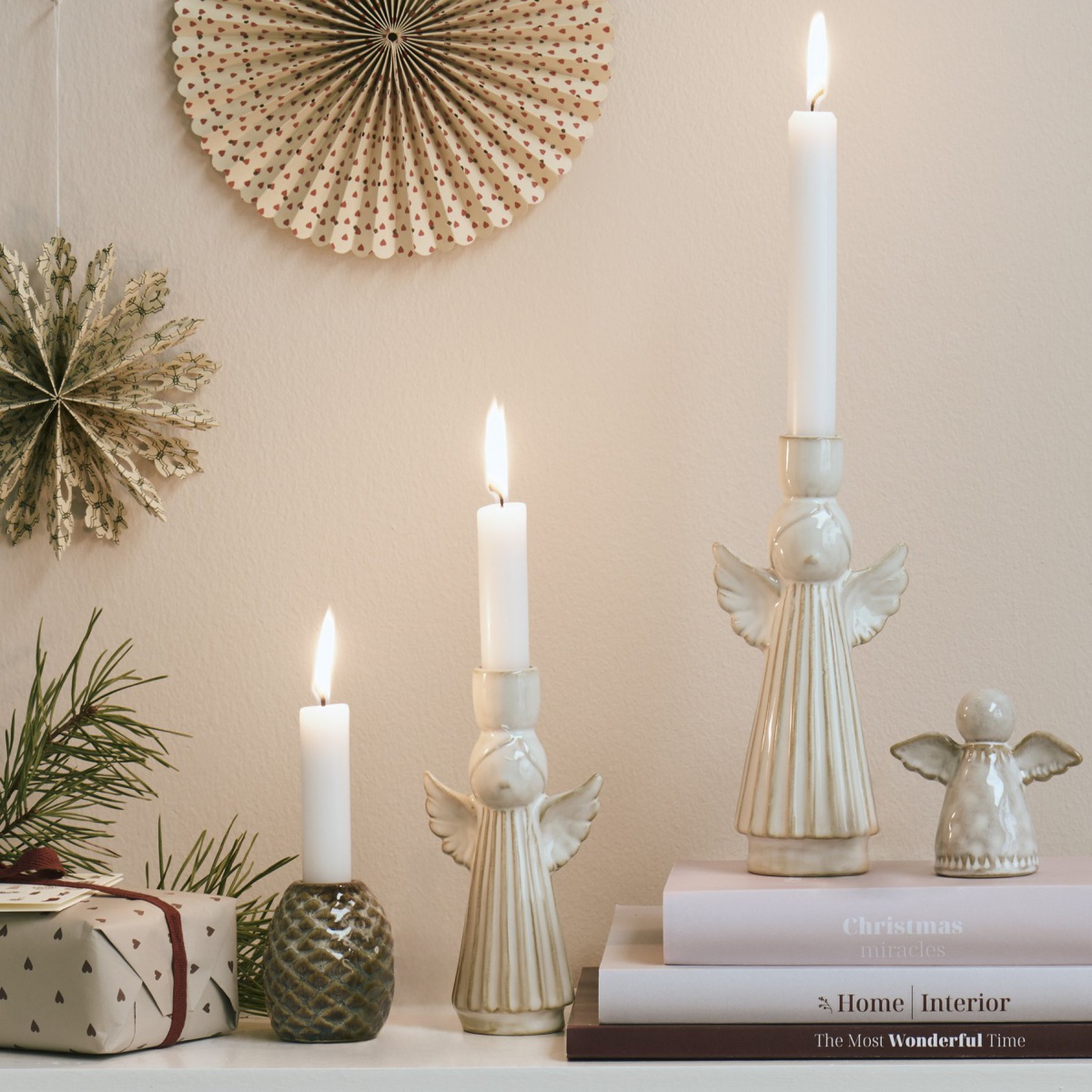 Unverkennbar skandinavisches Design, schlicht und schön erhellen die zwei Engelsschwestern den Raum und verbreiten Hygge Atmosphäre.