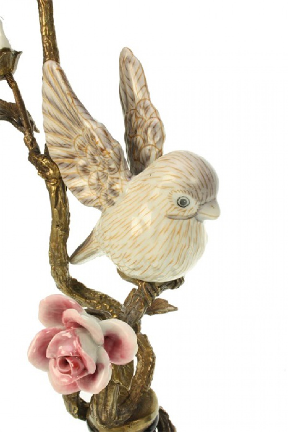 Extravagentes Kerzenleuchter Paar aus Porzellanmit Messingrosetten, handbemalt – Salonflair par excellence.