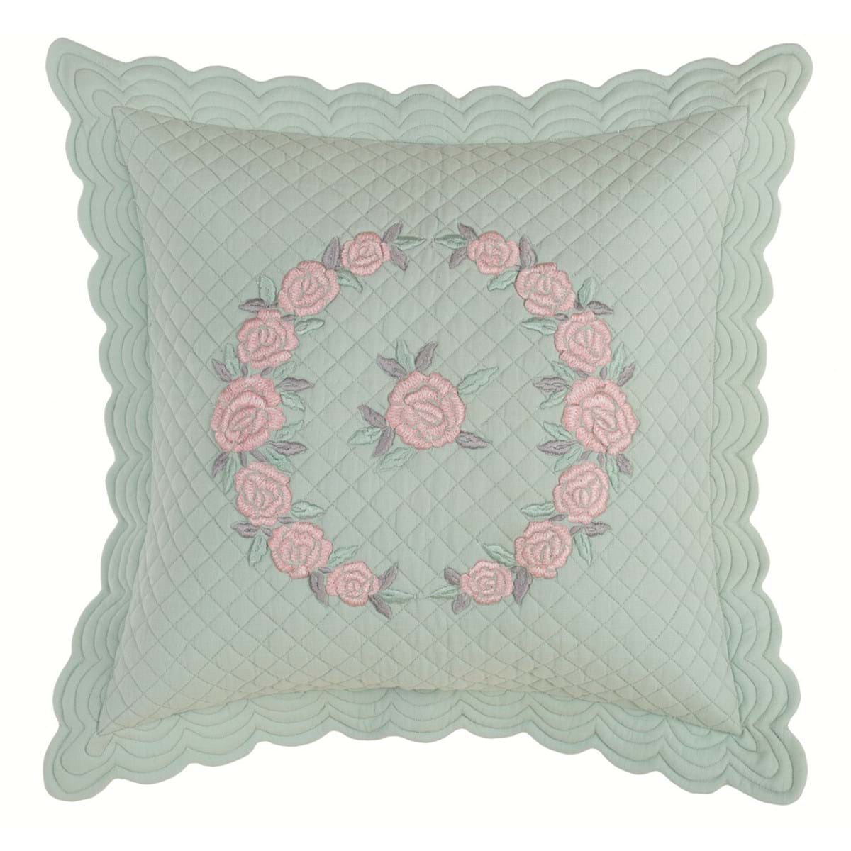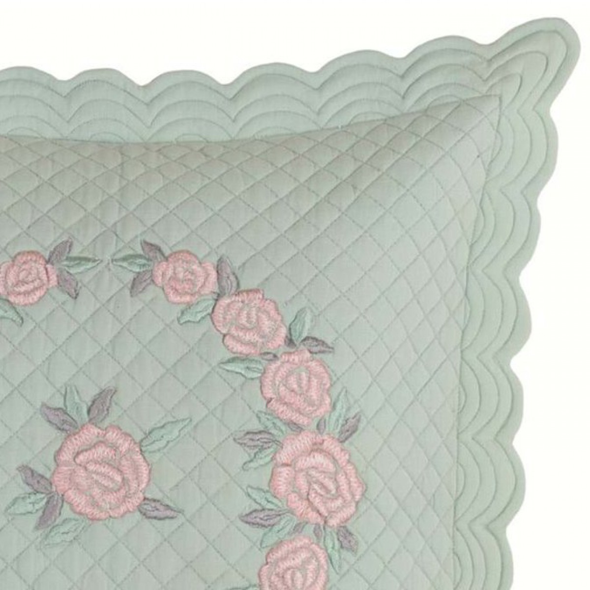 Quilt Kissen in Mint mit edlem, gesticktem Blütenkranz – Blanc MariClo Bellissima.