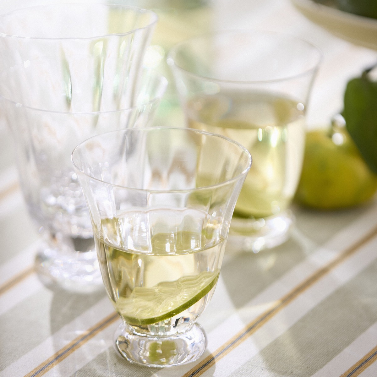 Die kelchförmigen Gläser mit Sockel sind für Wasser und Saft ebenso geeignet wie
