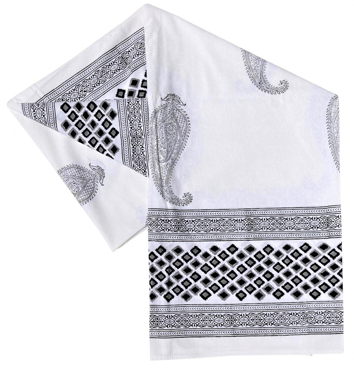 Zauberhafte Tischdecke mit schönem Randmuster und feinem Paisley Muster. Der zarte weiße Musterprint im Mittelteil edelt diese Alltags Tischdecke.