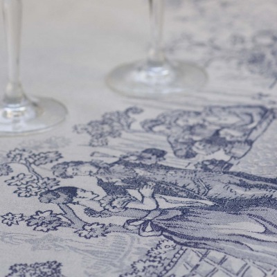 TISCHWÄSCHE VERSAILLES - malerische Szenerie einer höfischen Landpartie mit durchgewebtem Muster
