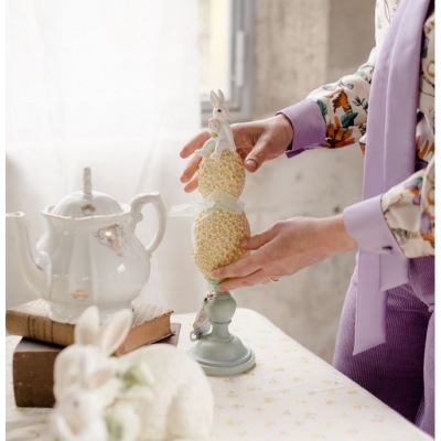 Doppel-Ei mit Schleife und sitzendem Häschen