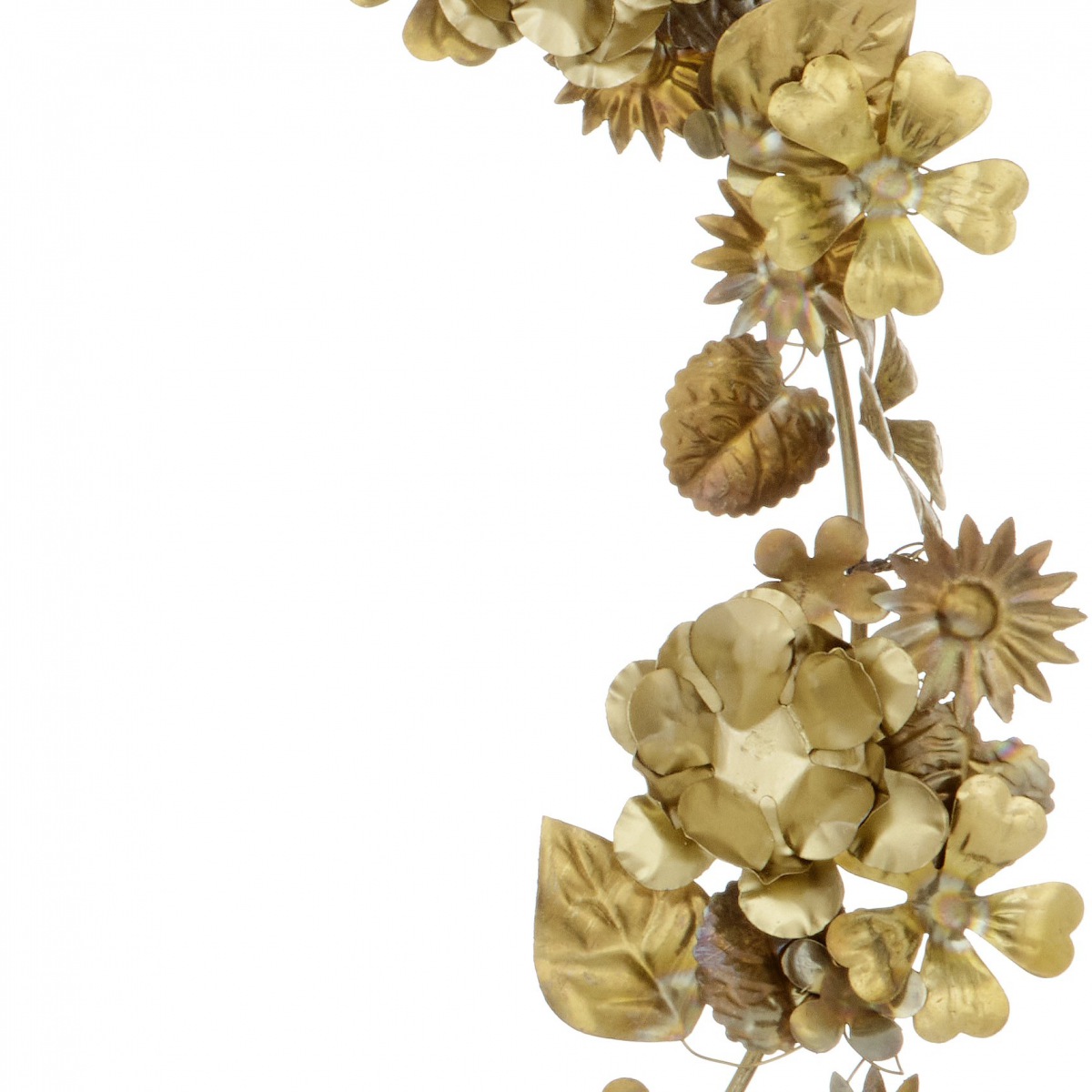 Dekorativer, eleganter Kranz mit schönen Blüten und Blättern aus glänzendem, stabilem Messing für die Wand, den Esstisch oder die Türe. Nicht nur zu Festzeiten ist der große Kranz ein zauberhafter Blickpunkt.