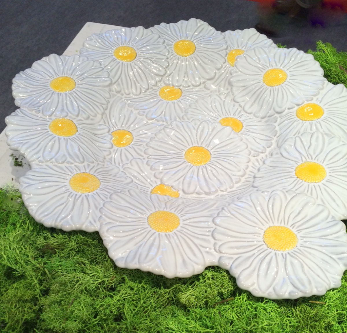Die große Platte mit plastischen Blütenmotiven bezaubert mit einer wunderschönen Form.