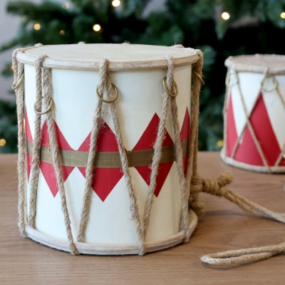 Skandinavische, handgefertigte Trommeln mit Vintage Flair verleihen dem weihnachtlichen Ambiente nostalgischen Charakter.