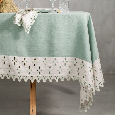 Diese schöne Leinentischdecke mit hochwertiger Cut-Work und Stick Muster Randbordüre eignet sich sowohl für festliche Anlässe (z. B. für den Frühlings- und Ostertisch) wie für den alltäglichen Gebrauch und lässt sich sehr gut mit vielen Farben des Geschirrs kombinieren.