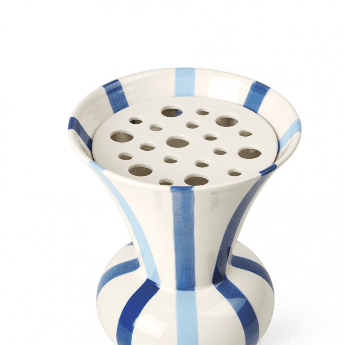 Ein separater, gelöcherter Einsatz mit unterschiedlicher Lochung ermöglich individuelle Arrangements. Ob eine einzelne Prachtblume, Zweige oder Stile in unterschiedlicher Höhe -  jeder Blütenstil, jedes Ästchen und jeder Grashalm bleibt an Ort und Stelle, der Fokus des Arrangierens konzentriert sich auf Proportion und Kombination.
