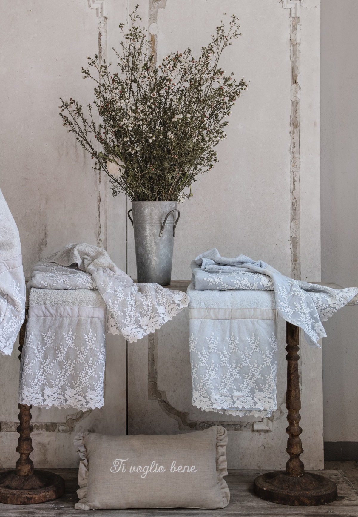 Finezza italiana - eleganter Pareo aus weichem Baumwolle Frottee, hochwertiger femininer Spitze und Samtband.