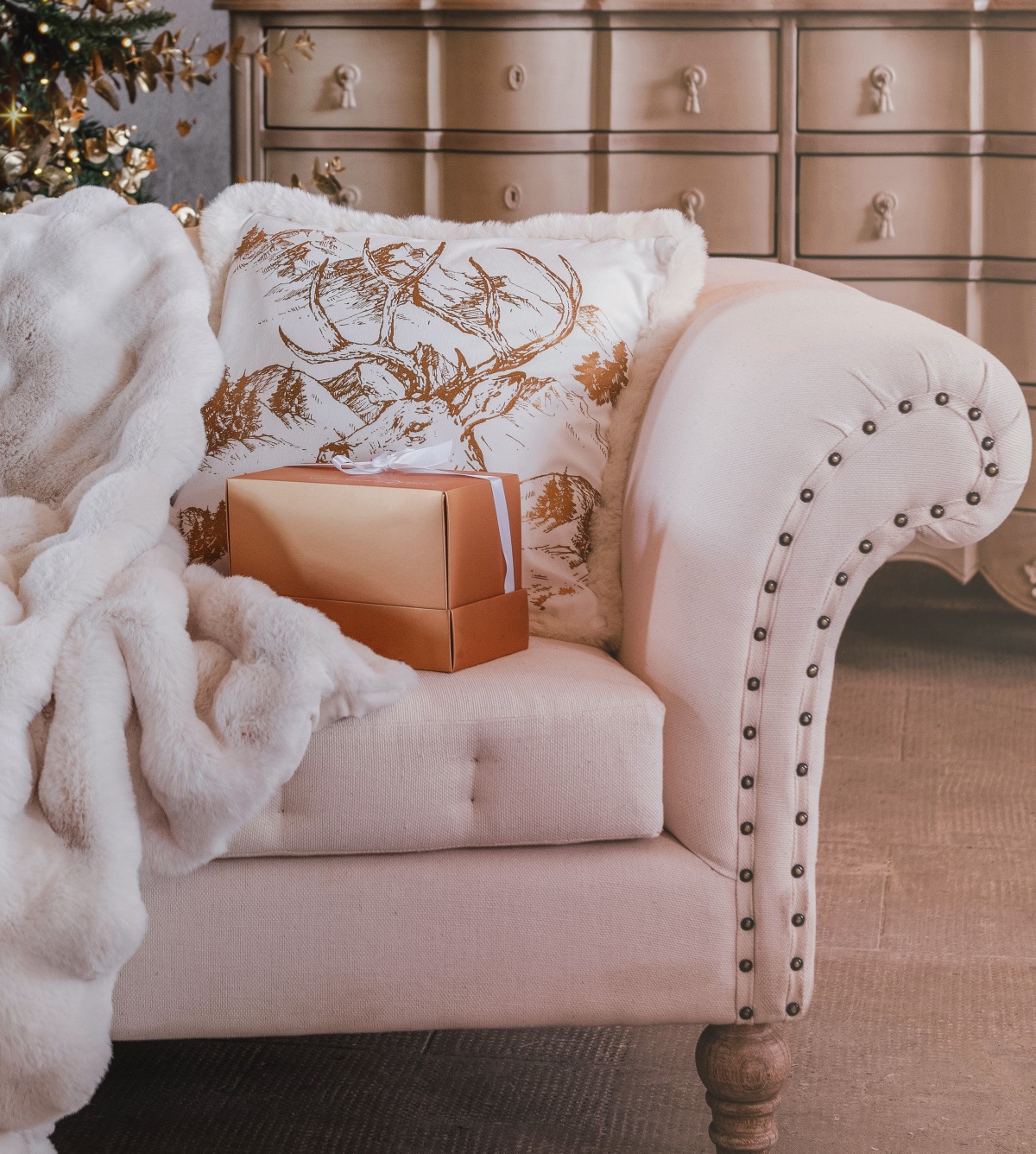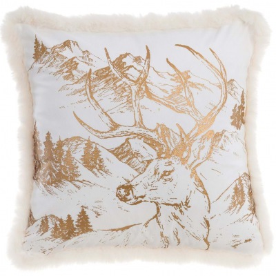 Elegantes Hirsch Motiv vor alpinen Hintergrund, Randeinfassung mit Felloptik.