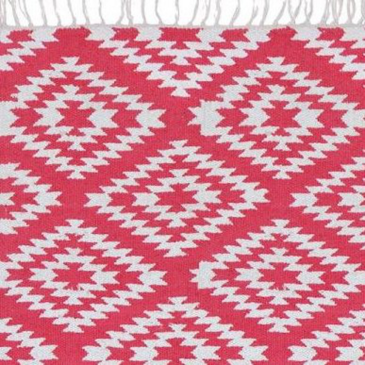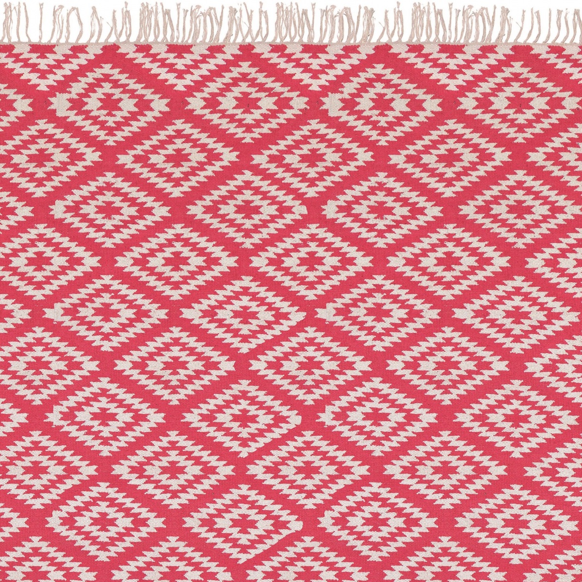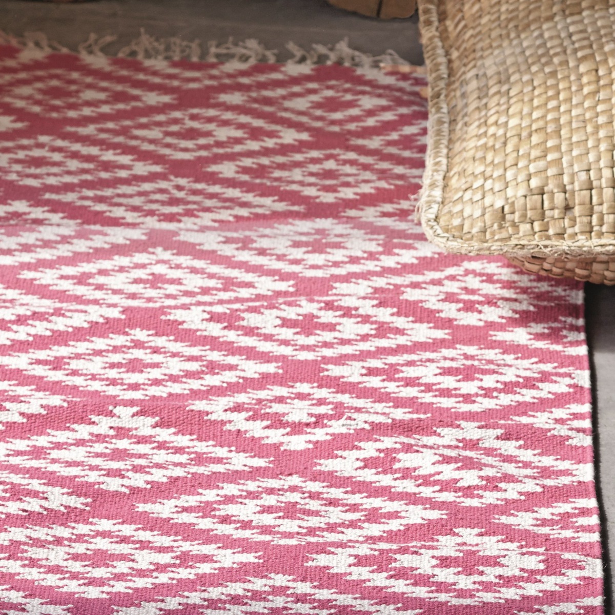 Fest und kompakt gewebt in sogenannter "Kelim"-Technik.